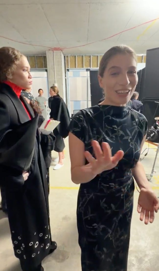 Anyway, I’m bewildered by the amount of press 5 minutes of walking in a straight line received. Maybe more than for writing a whole book? 1 I am extremely happy to be allowed to be ugly again, and ugly I am, as I have an extreme cold and keep sneezing into my hair. My main takeaway is: I would like a professional makeup artist to do my makeup every day for the rest of my life, and it’s crazy how gorgeous models are. Obviously these are not earth-shattering revelations.