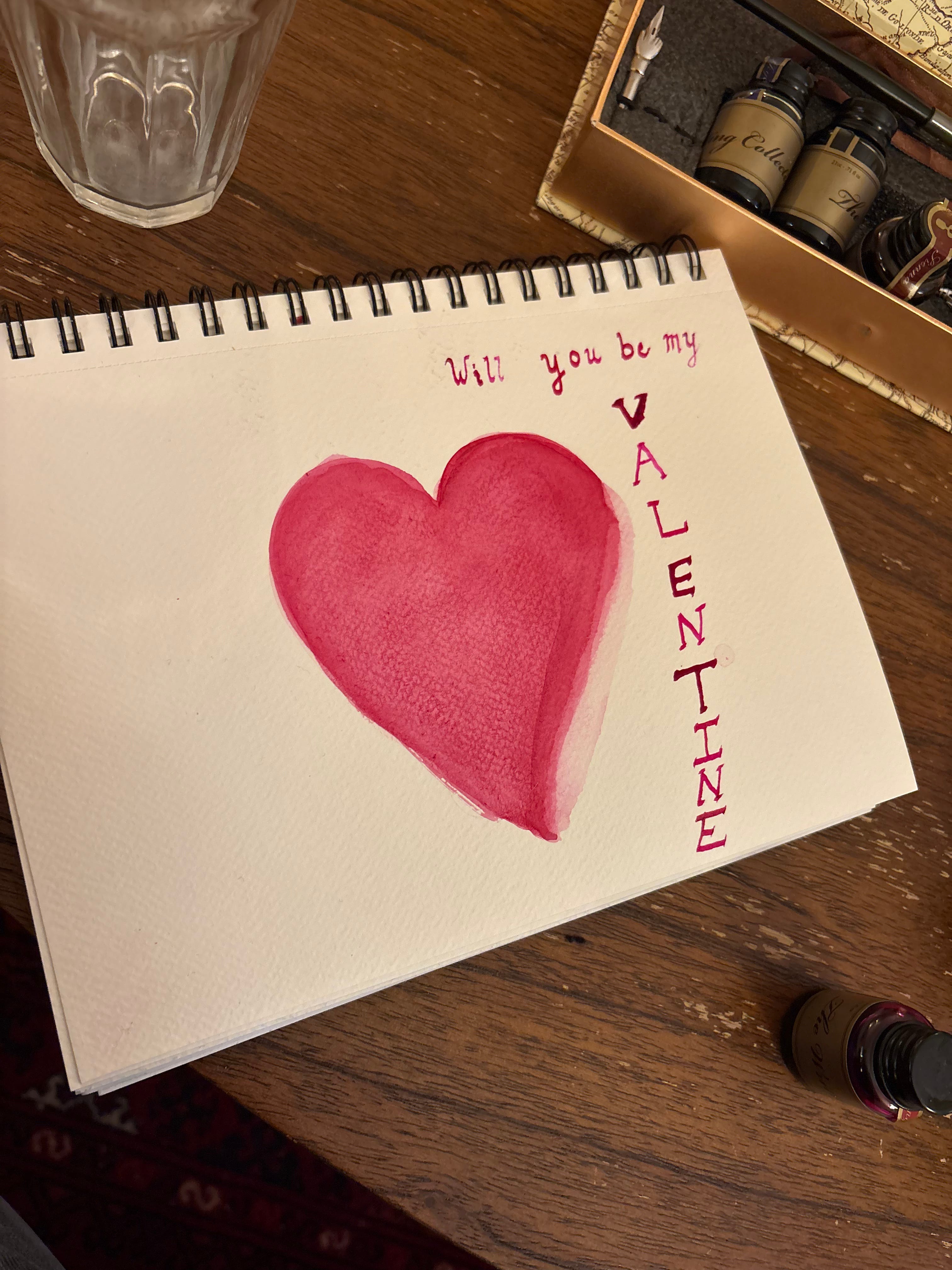 For Valentine’s day I made Will a handmade card with watercolors and my calligraphy set… I think they should sell them at John Derian.
